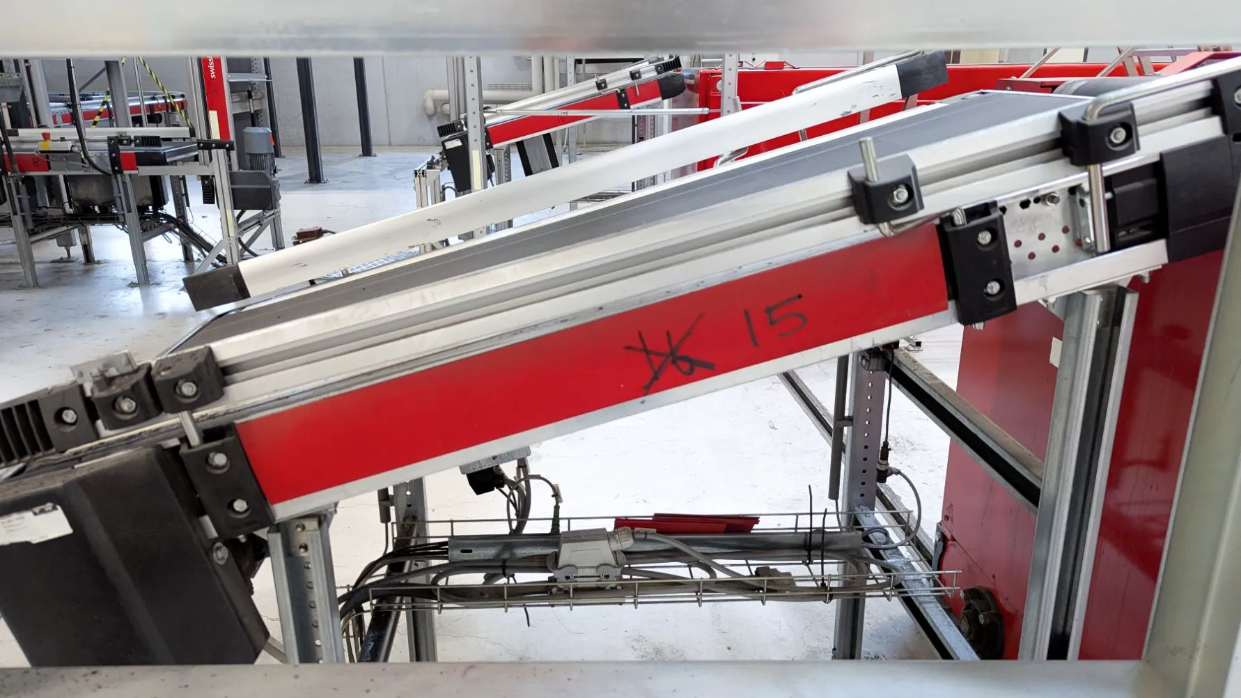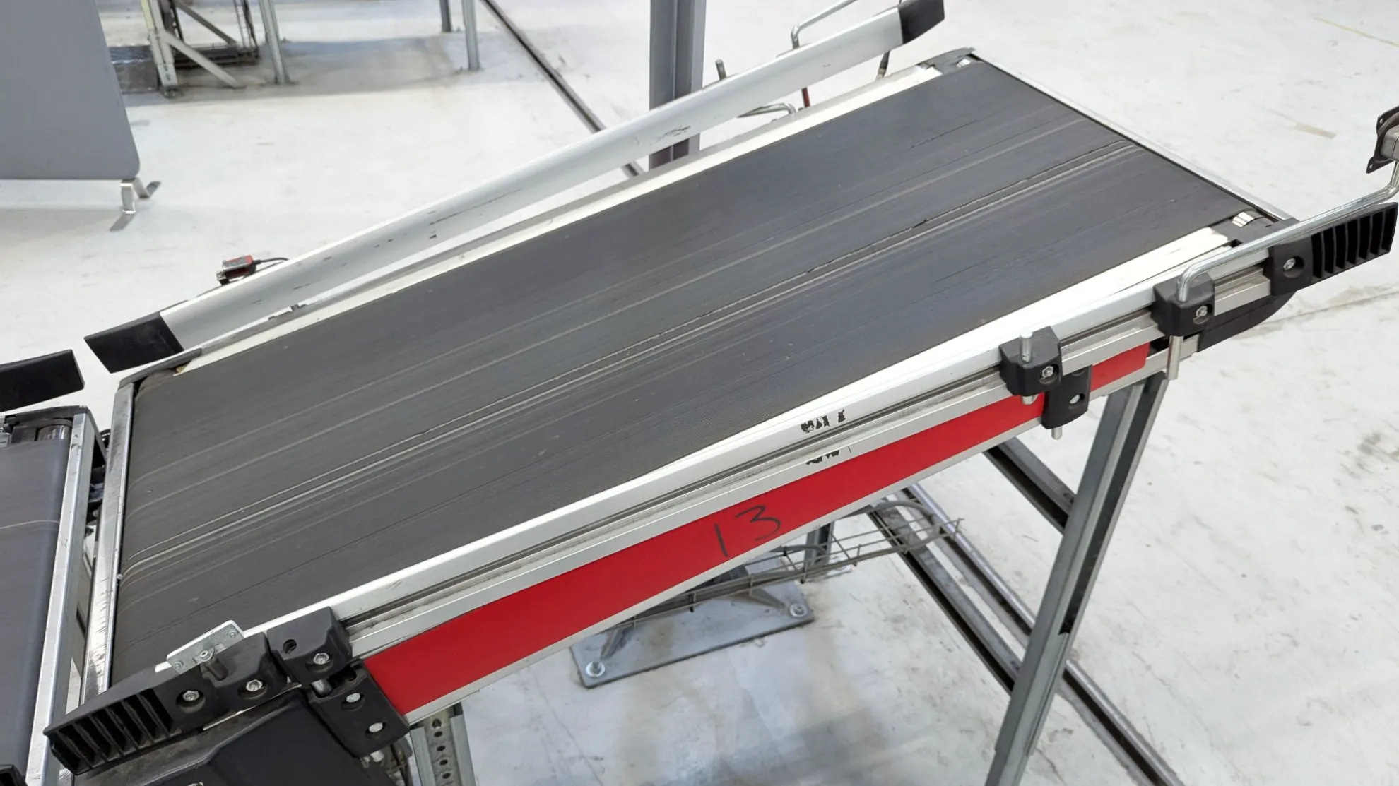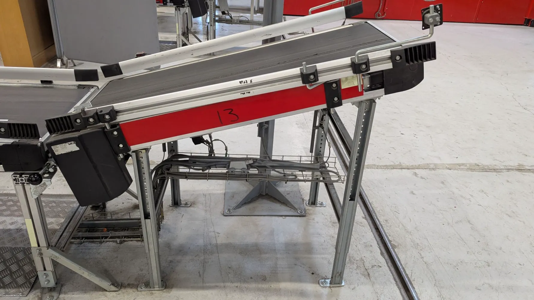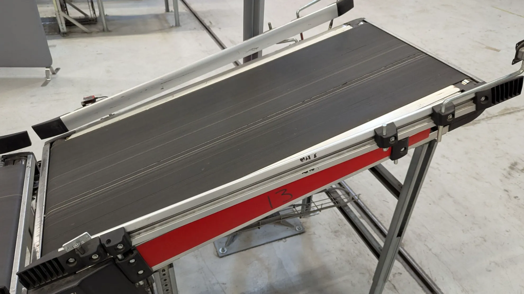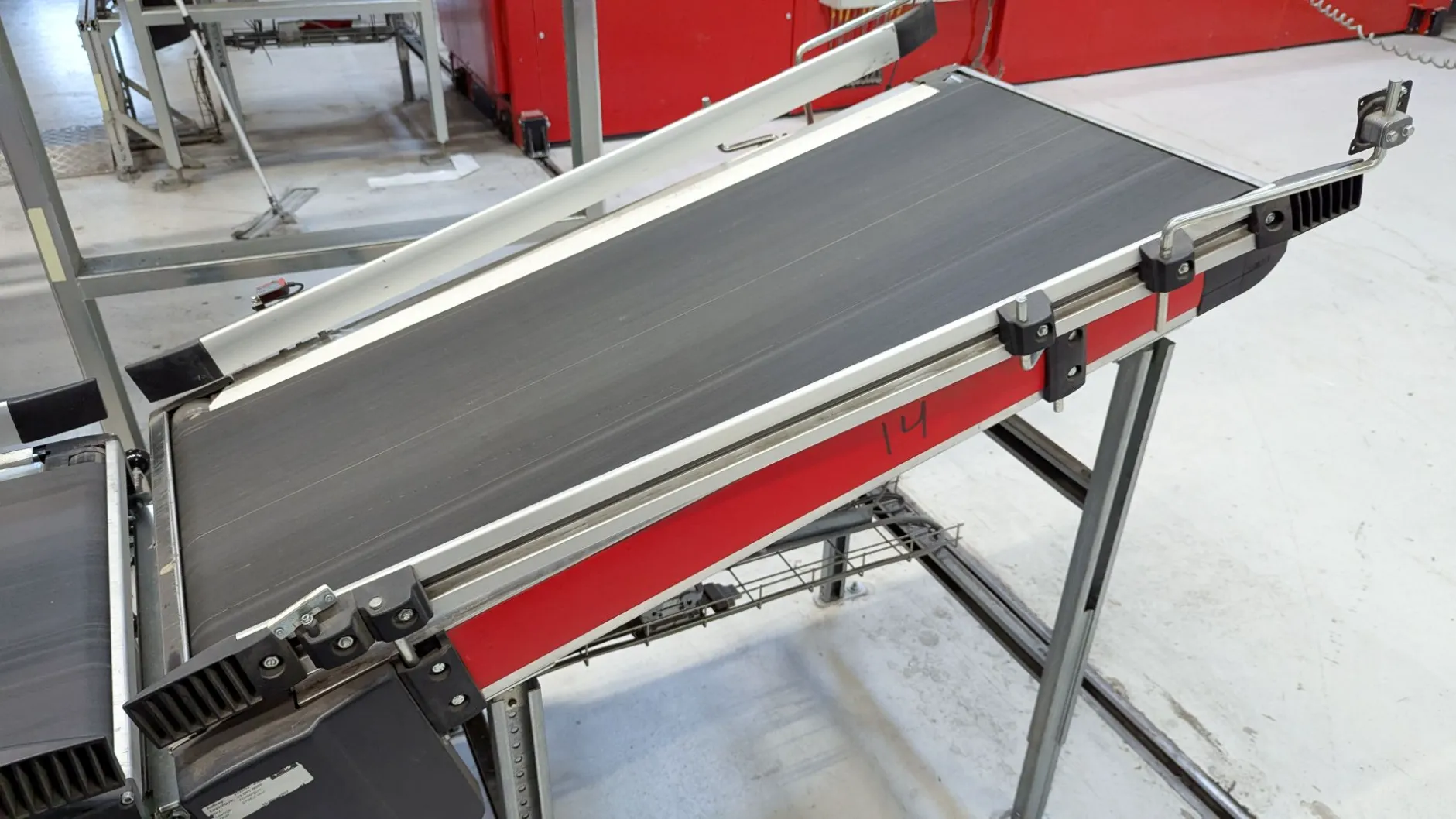 Fire Swisslog skrå båndtransportører er nå tilgjengelige for salg. Hver transportør er 1400 mm lang og designet for å transportere varer jevnt oppover eller nedover - perfekt der nivåforskjeller må overvinnes i lager-, produksjons- eller logistikksystemer.