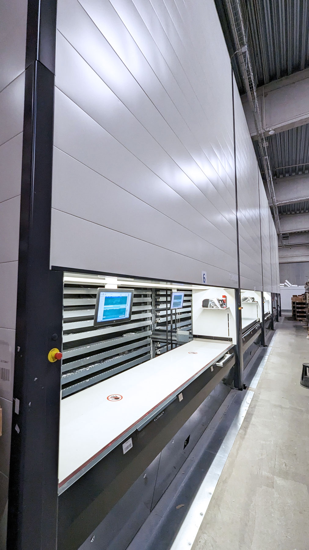 Maskinene har en Høyde på 9 000 mm og kan senkes svært enkelt under installasjon. Hyllene har en bredde på 4 000 mm og en Dybde på 820 mm, noe som gir et lagerareal på 3,28 m2 per hylle. Med 81 hyller per maskin gir dette et totalt lagringsområde på 266 m2. Samtidig tar maskinene bare opp 13,5 m2 gulvplass.