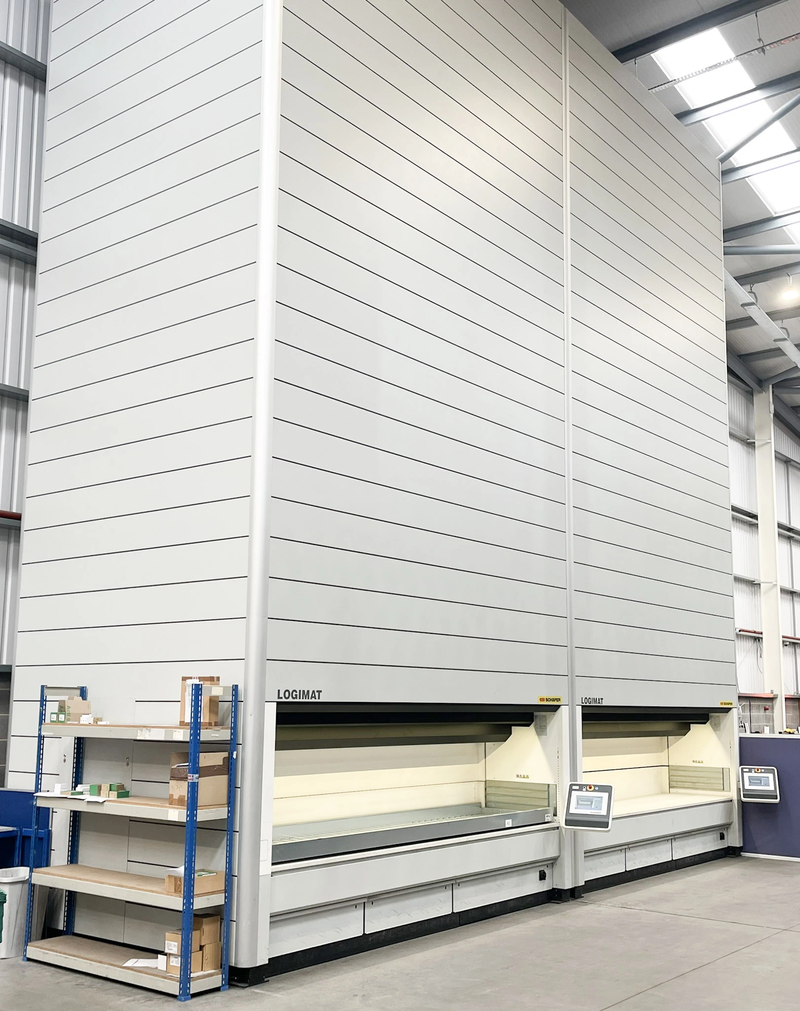 Vi har nå tre SSI Schäfer Logimater fra 2017 tilgjengelig. Maskinene er i svært god stand og har vært på service hos produsenten hvert år siden de ble installert. Den siste servicen ble utført i april 2025. Fordi de har blitt brukt forsiktig med lette laster og vedlikeholdt regelmessig, er lagerautomaterna i topp stand. De er godt vedlikeholdt og klare til fortsatt bruk.