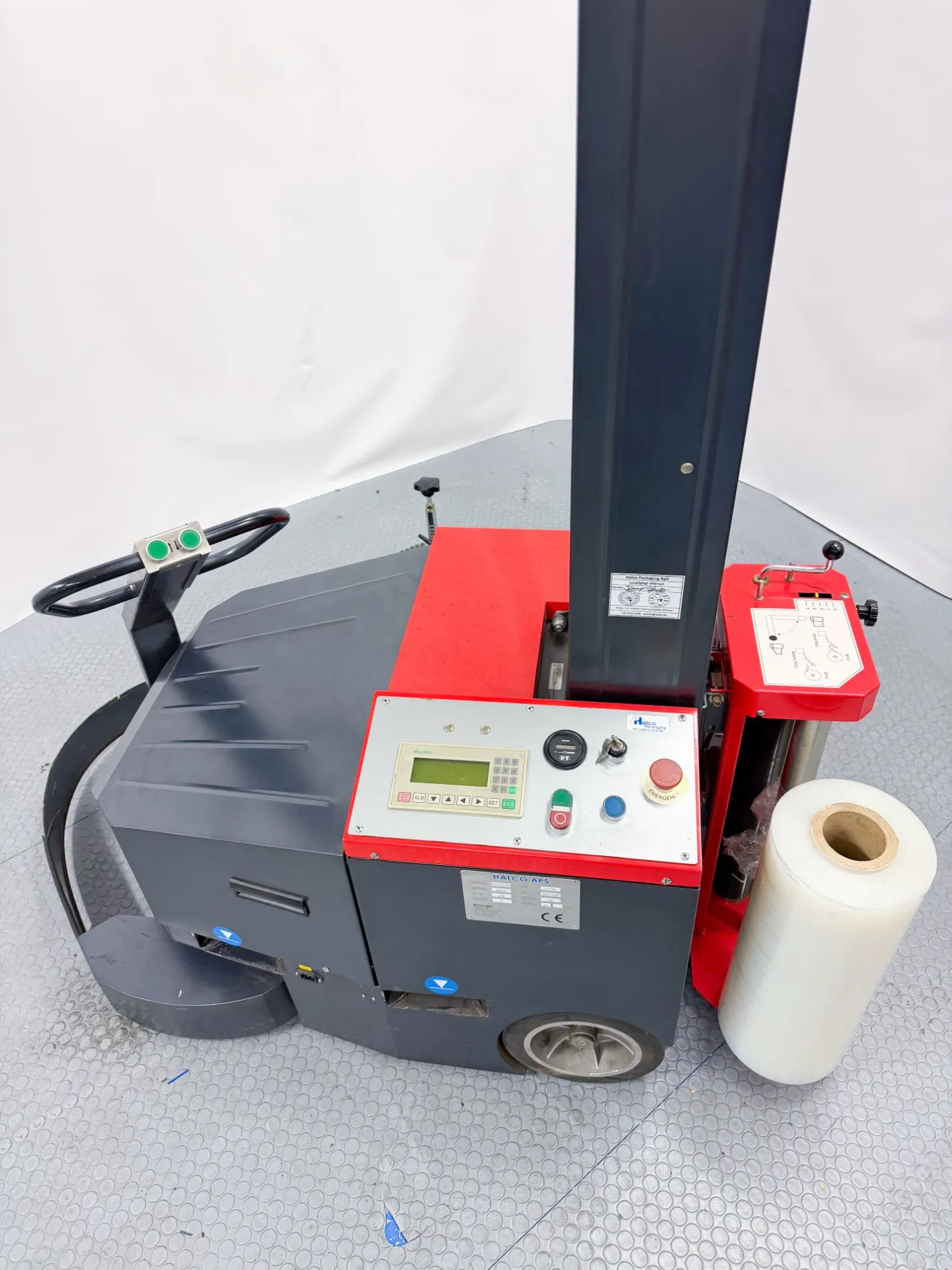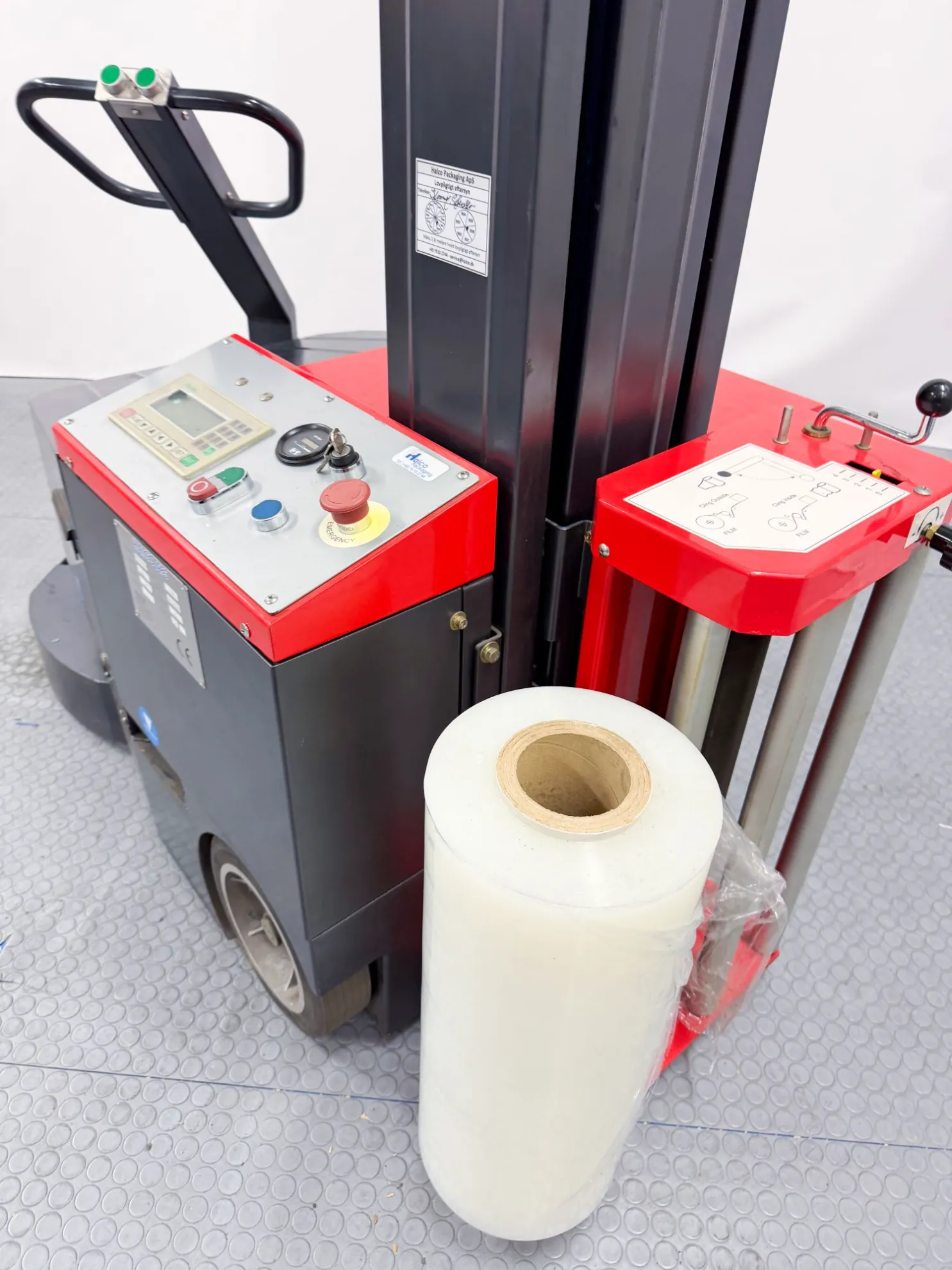 Filmvognen er kjededrevet for jevn mating, og er utstyrt med en høydesensor som automatisk registrerer pallens høyde. Maskinen har både opp- og nedprogram og justerbare topp- og bunnviklinger for optimal stabilitet.