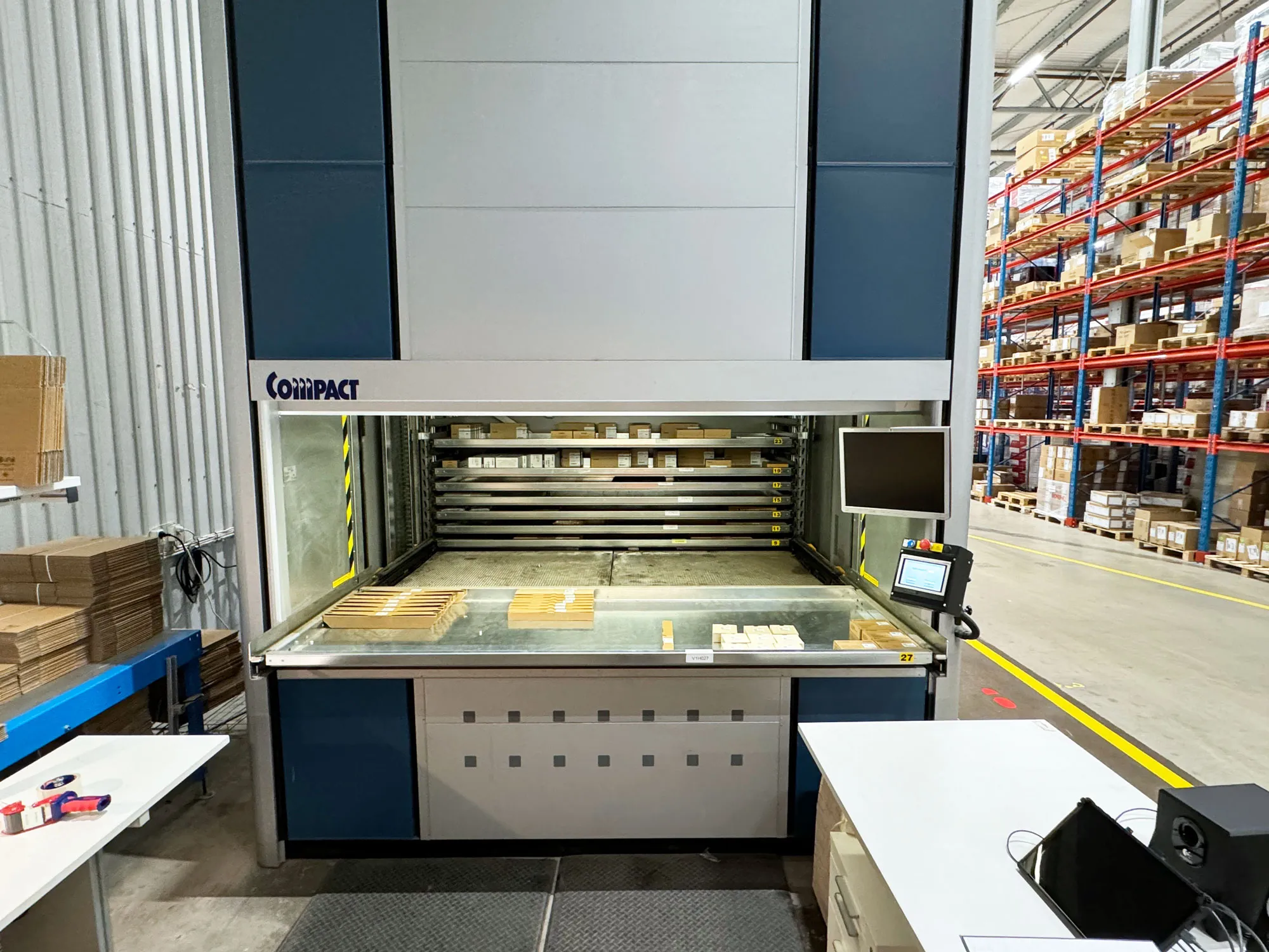 PLS-en til lagerautomaten har nylig blitt oppgradert til en mer moderne versjon. Maskinens forlengelse gjør det enklere å løfte ut tunge gjenstander og gir bedre ergonomi.